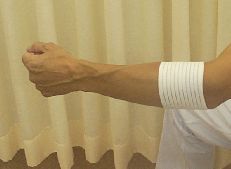 仕事などでどうしても無理をする人はテニスエルボーバンド(ゴルフ用も同じです。)という装具もあります。