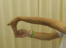 手を強く握ったり、腕を伸ばして物を下げたり・ひっぱたり、荷物などを持ち上げるなどで痛みます。