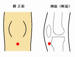 成長期に多く見られるために成長痛と言われることもあります。膝の前面で脛骨(けいこつ)上端部【=膝のお皿の下の方で少し骨が飛び出ているところ】に痛みが生じ、進行すると骨隆起が目立ちます。